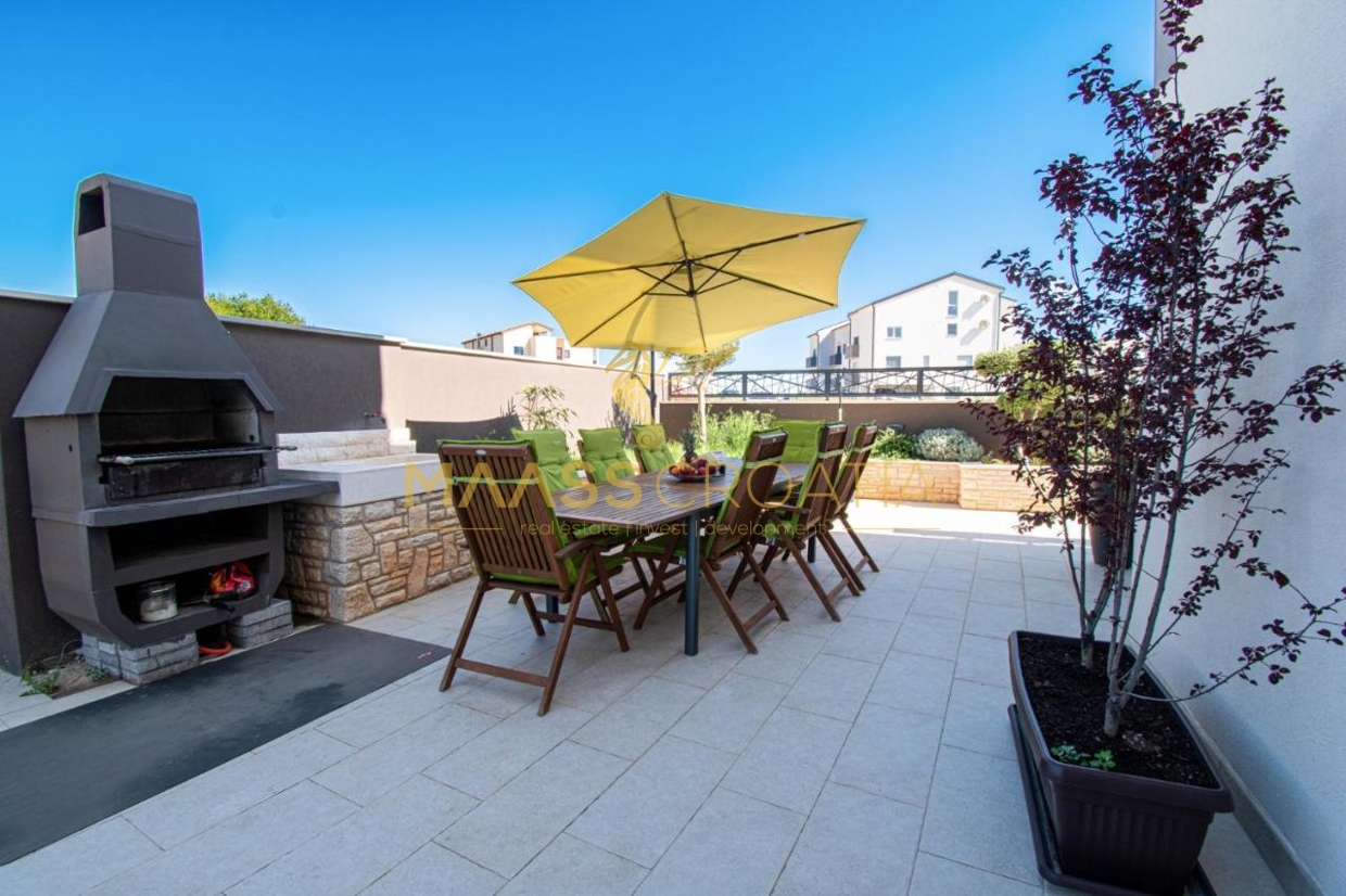 Prodaje se luksuzna samostojeća kuća površine 200 m² s prekrasnim pogledom na more, smještena u Medulinu, samo 150 metara od mora i plaže.