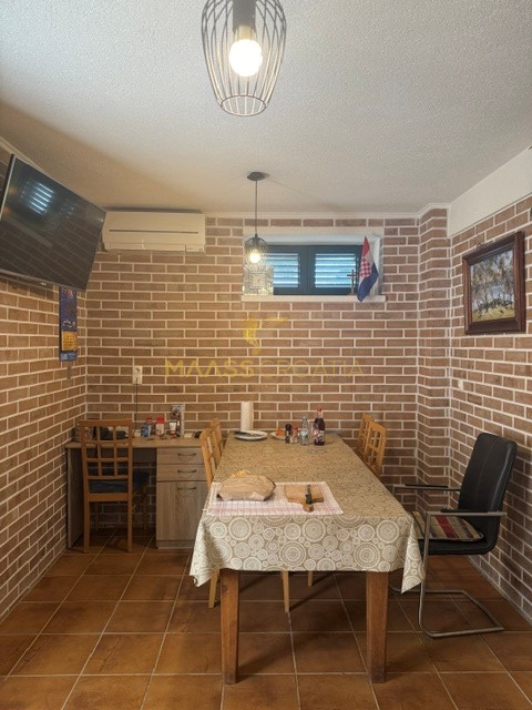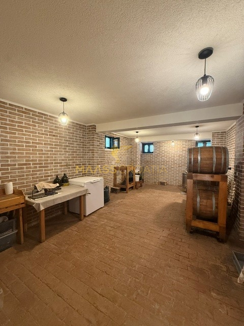 Podrum je dostupan vanjskim stepenicama i sadrži prostranu konobu s kuhinjom, blagovaonicom i velikom otvorenom prostorijom – idealno za druženja, hobije, rekreaciju ili kao dodatni smještaj za goste.