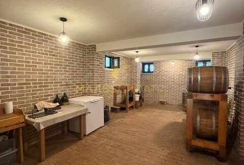 Podrum je dostupan vanjskim stepenicama i sadrži prostranu konobu s kuhinjom, blagovaonicom i velikom otvorenom prostorijom – idealno za druženja, hobije, rekreaciju ili kao dodatni smještaj za goste.