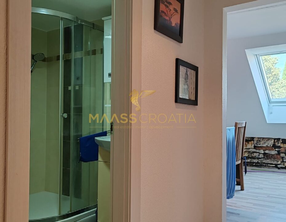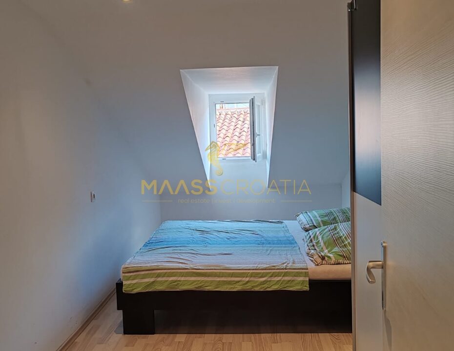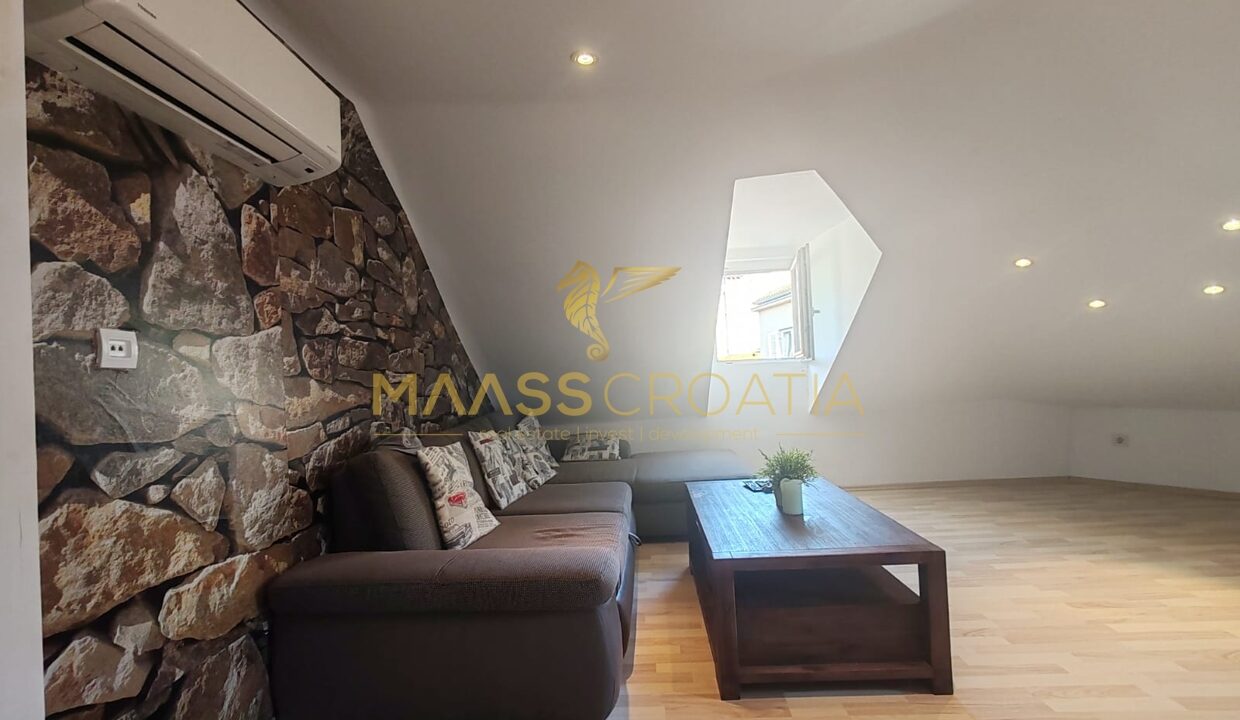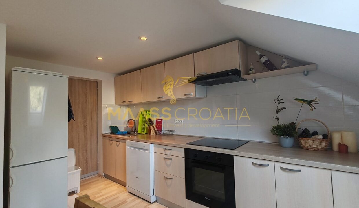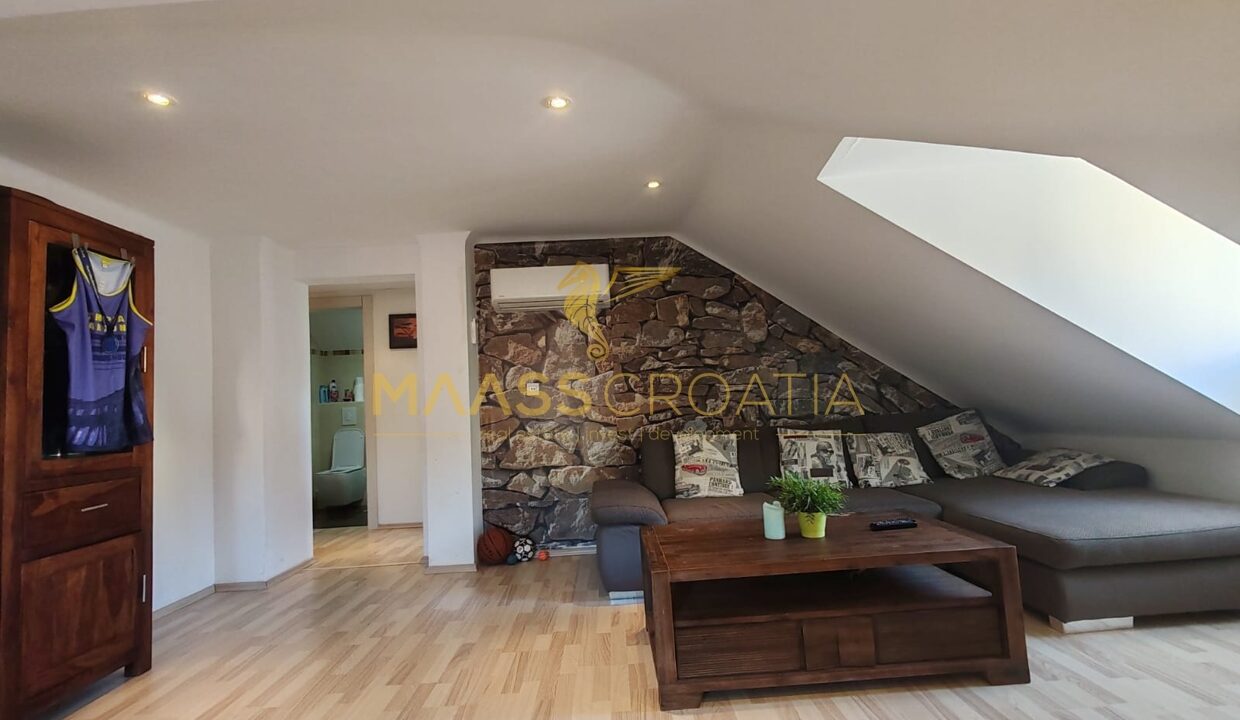 Stan se nalazi u potkrovlju dvokatne zgrade i prodaje se namješten.