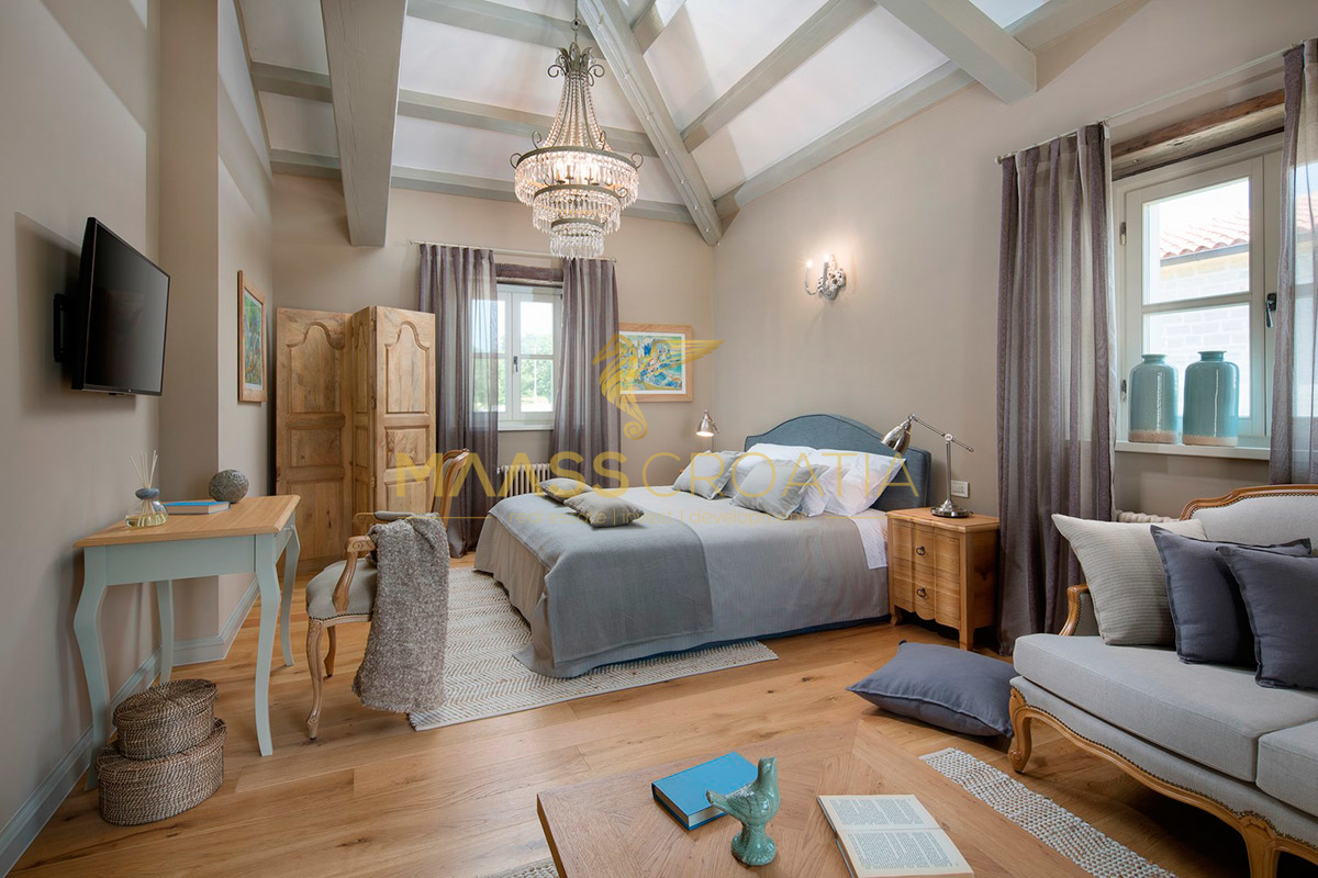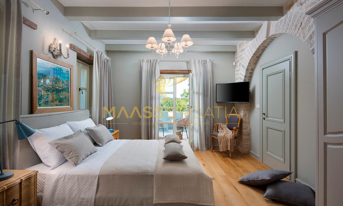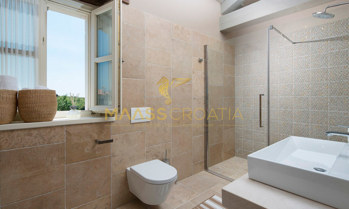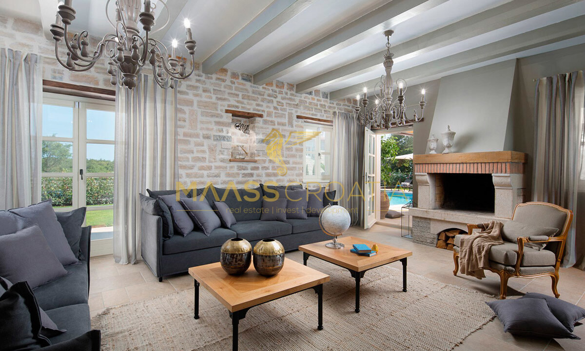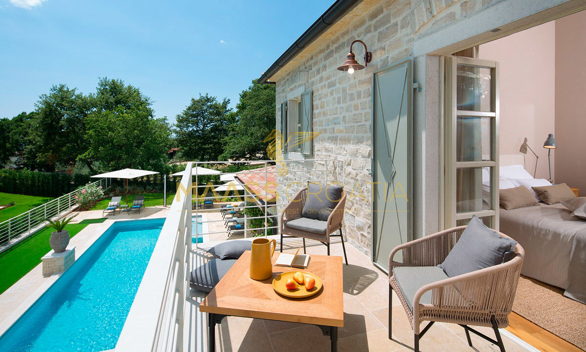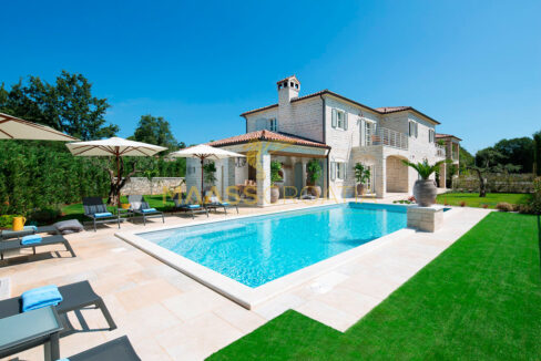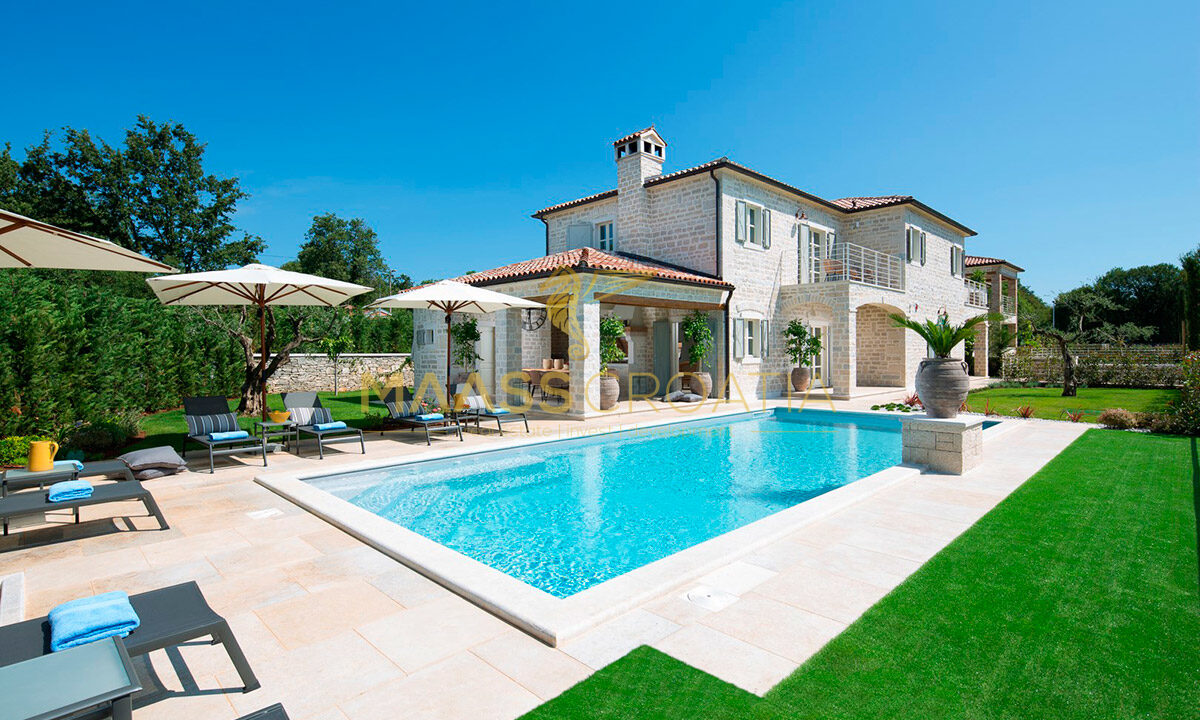 Prodaje se luksuzna vila s bazenom i 359 m2 stambene površine, okućnice površine 880 m, udaljena od Poreča cca 15 km i cca 16 km od mora, s dvije potpuno klimatizirane etaže.