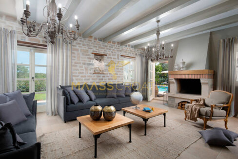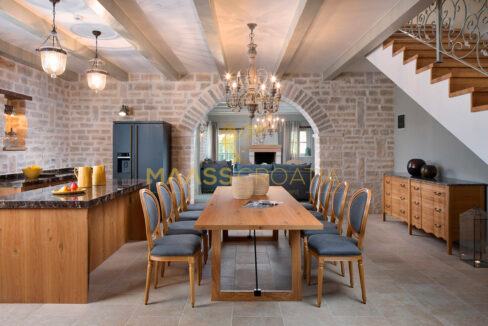 U prizemlju kuće nalazi se prostrani dnevni boravak s kaminom i satelitskom TV te izlazom na prostranu natkrivenu terasu sa stolom za blagovanje, kaminom za roštiljanje i dnevnim boravkom, velika, potpuno opremljena kuhinja s blagovaonicom, spavaća soba s bračnim krevetom. i bračni krevet, zadnji wc i izlaz na terasu, odvojeni wc u dnevnom dijelu i tuš/wc na terasi.