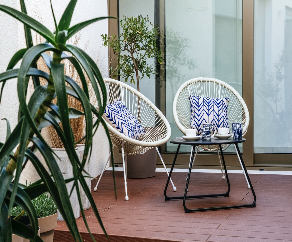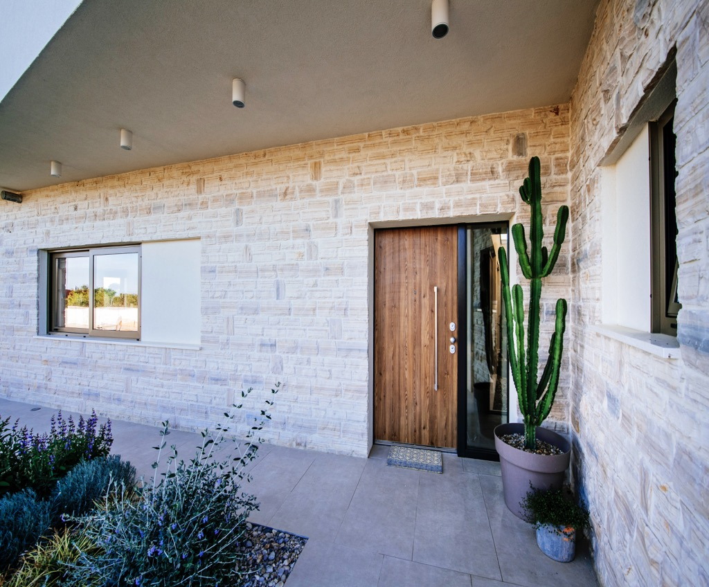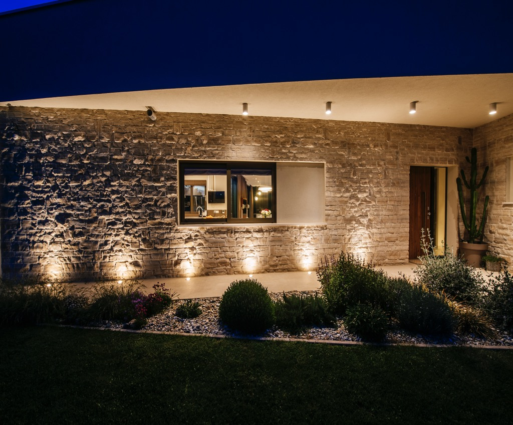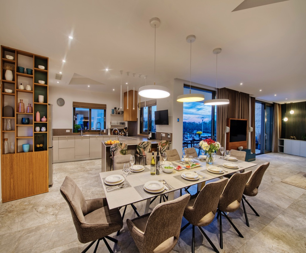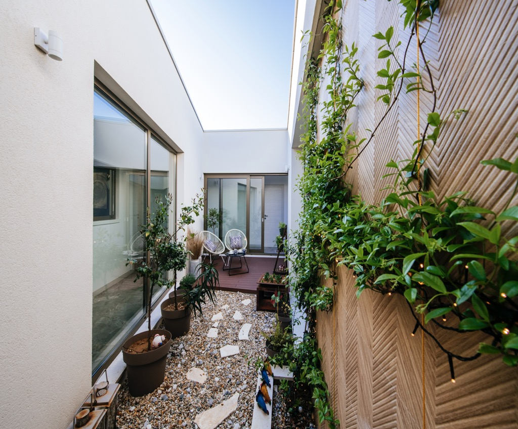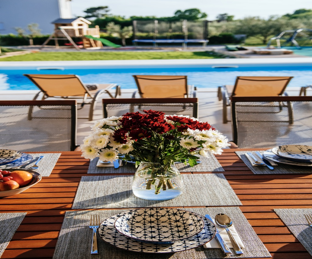 Prostrana terasa, koja služi kao dnevni boravak, povezana je s odvojenom kućom za goste i skladno se uklapa u cjelokupni dizajn.