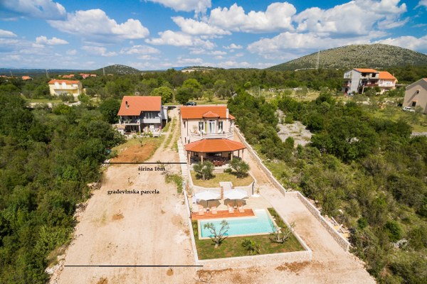 Nekretnina se nalazi na parceli od 2500 m². Prostrana i privlačna izgledom i funkcionalnošću, ova lokacija mirno je i skladno okružena raznolikom prirodnom ljepotom, nudeći mir i privatnost koju svi žudimo. Idealna je kao potencijalni stalni dom ili kuća za odmor.