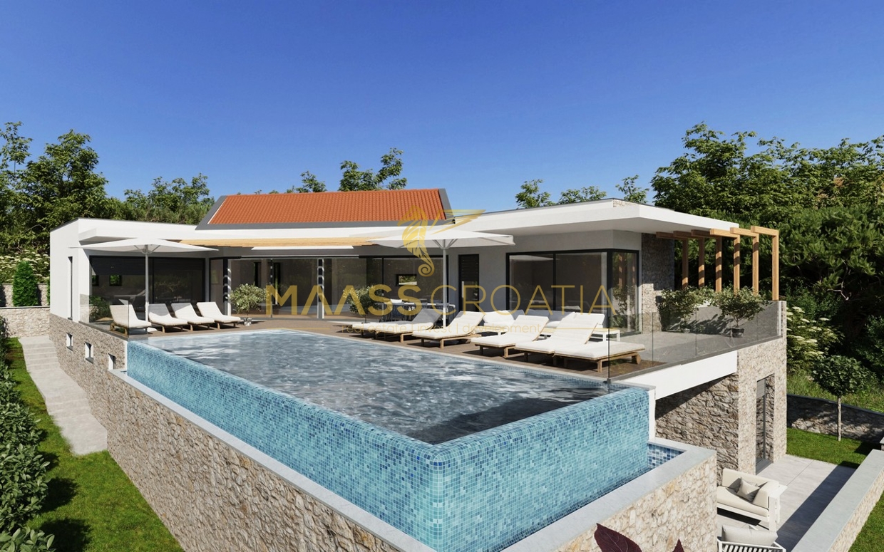 U mirnom okruženju, daleko od užurbanosti svakodnevnog života, nalazi se ova vila s panoramskim pogledom na more, liftom, garažom i infinity bazenom.