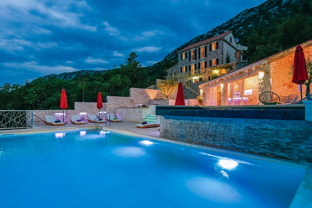 Sanjate li o tropskom odmoru, beskrajnim zalascima sunca i prekrasnim plažama? Ova prvoklasna vila iz 18. stoljeća uistinu je izvanredno arhitektonsko remek-djelo. Potpuno renovirana 2016. godine, ova trokatnica, površine 330 četvornih metara, sada se može pohvaliti s 5 luksuznih, potpuno opremljenih spavaćih soba, dovoljno parkirnih mjesta, prekrasnim velikim bazenom i više unutarnjih i vanjskih zabavnih prostora. Izgrađena na kaskadnoj parceli, izgrađena je od tradicionalnog bijelog kamena i nalazi se ispod padine brda, nudeći panoramski pogled na okolnu divljinu. Pravi dragulj na jadranskoj obali, ova vila će vam dati osjećaj kao da ste se vratili u prošlost, gotovo u neko drugo stoljeće. Svojim tradicionalnim i povijesnim izgledom, ova vila je pravo remek-djelo. Dinamičan dizajn interijera i eksterijera osigurava zabavu u bilo kojem trenutku. Prekrasni drveni podovi, kameni zidovi i ručno izrađen namještaj savršeno dočaravaju karakter ovog doma. Vrhunac ovog dragulja nekretnina je veliko plutajuće područje doline, koje prikazuje prirodu u svoj njenoj raskoši! To dodaje dašak luksuza i elegancije. Slikovito prirodno okruženje savršeno je kombinirano s bijelim kamenom i plavim bazenom. Izgleda gotovo kao slika! Uzdiže cijeli posjed i daje vam osjećaj kao da ste na vrhu svijeta! Okružena prekrasnom divljinom, bujnom vegetacijom i obližnjom plažom, ovdje ne možete pogriješiti! Budući da je plaža udaljena samo 3 km od kuće, uživat ćete u maksimalnoj privatnosti u prekrasnoj, luksuznoj zajednici.