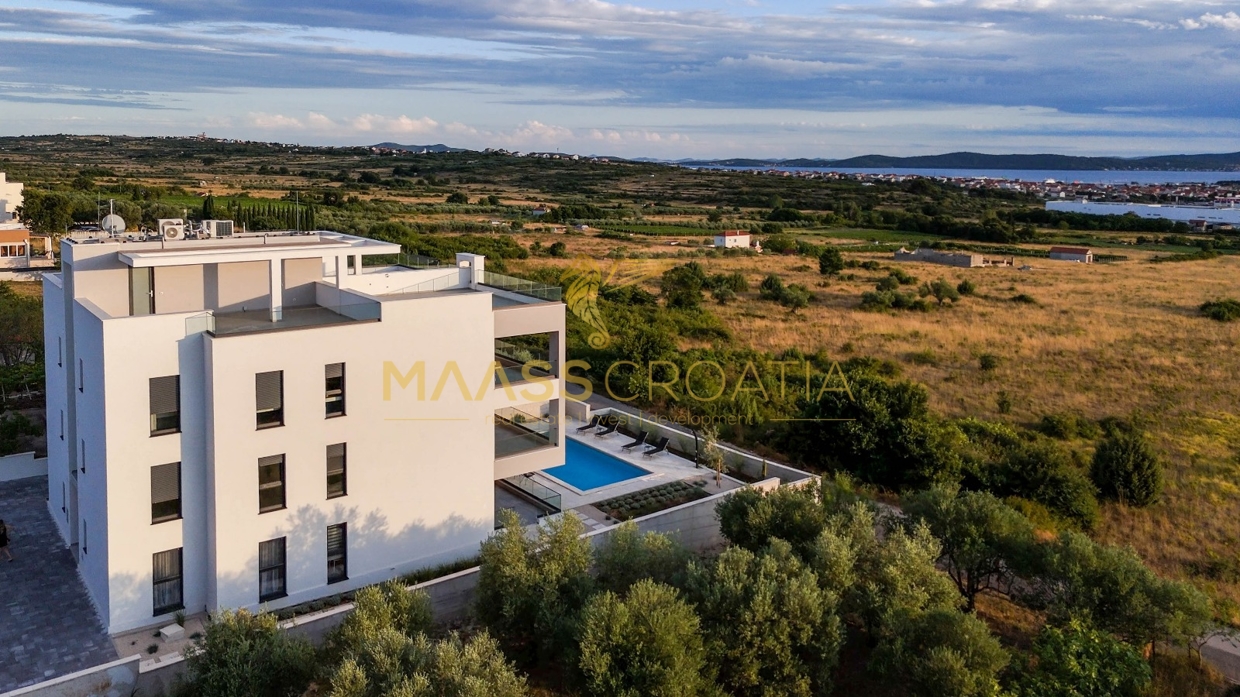 Moderna kuća u Medulinu s pogledom na more, bazenom i ljetnom kuhinjom